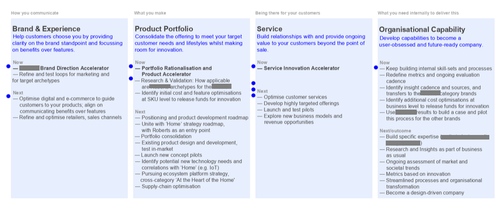 "Product innovation" was the original ask - with the objective of reclaiming a place as an industry leader, gaining back market share, and reversing a declining profit curve. But digging deeper with the Executive Leadership Team, and the Private Equity board, it was clear the ask wouldn't achieve the task; innovation might create a short term buzz but - it would simply be a waste of money if a clear future vision and the foundations to support consistent innovation were lacking - and immediate cash flow was at a critical point. There wasn't much runway left; the Board of the Private Equity owners were ready to cut the company loose.